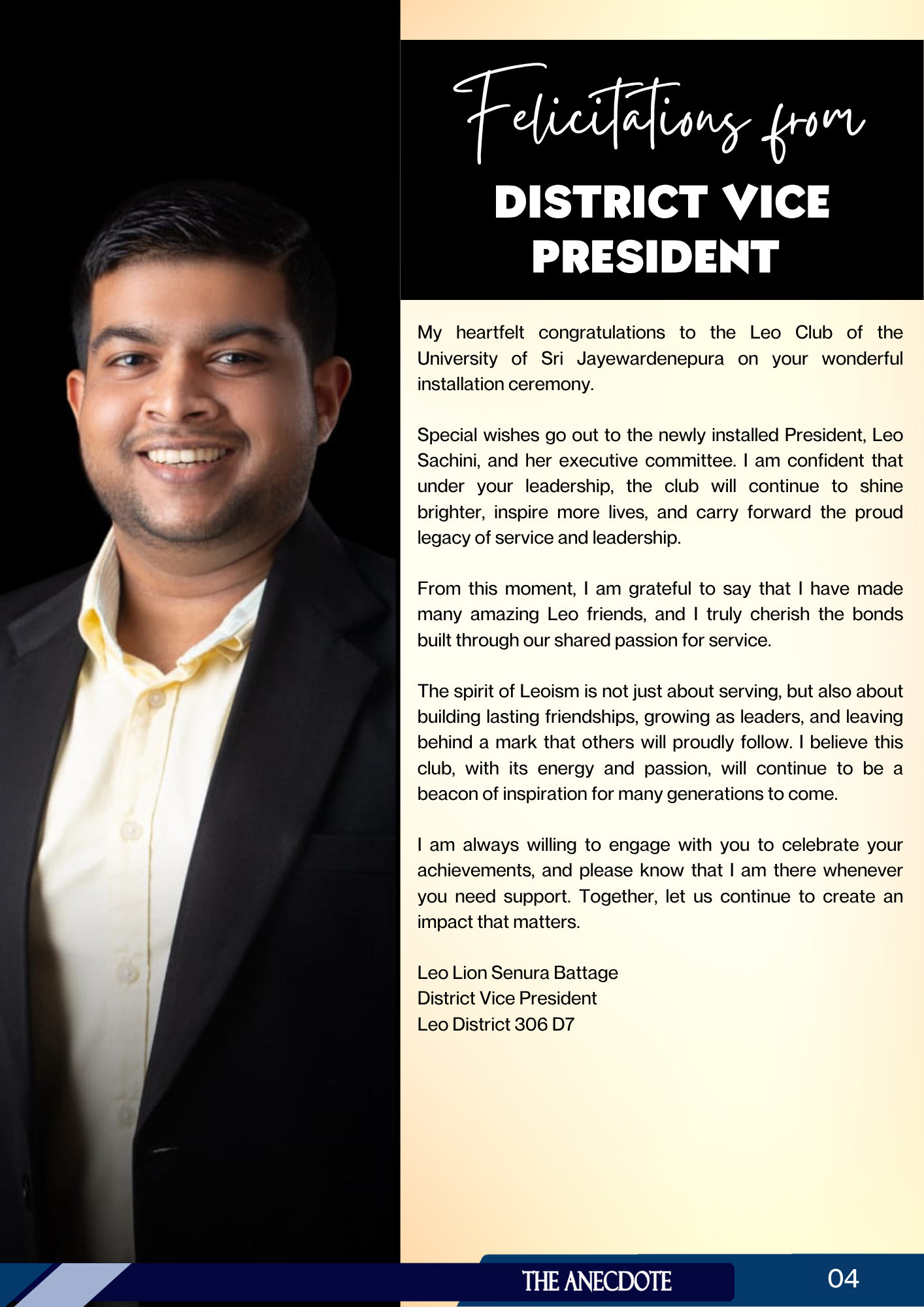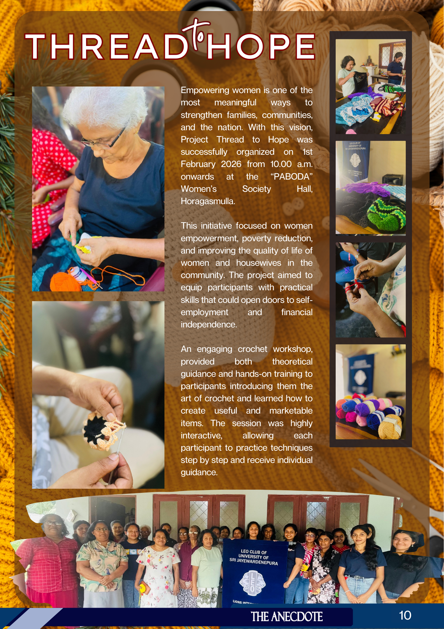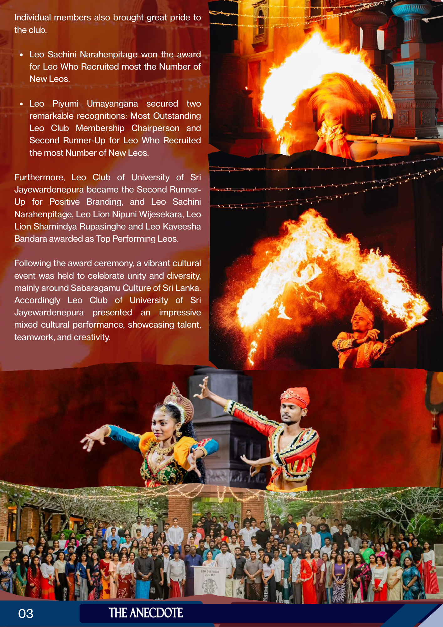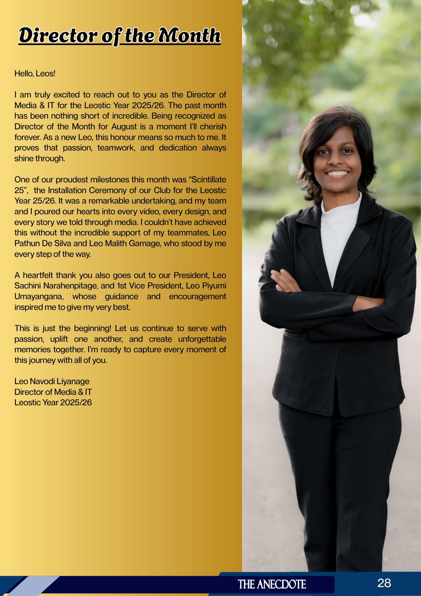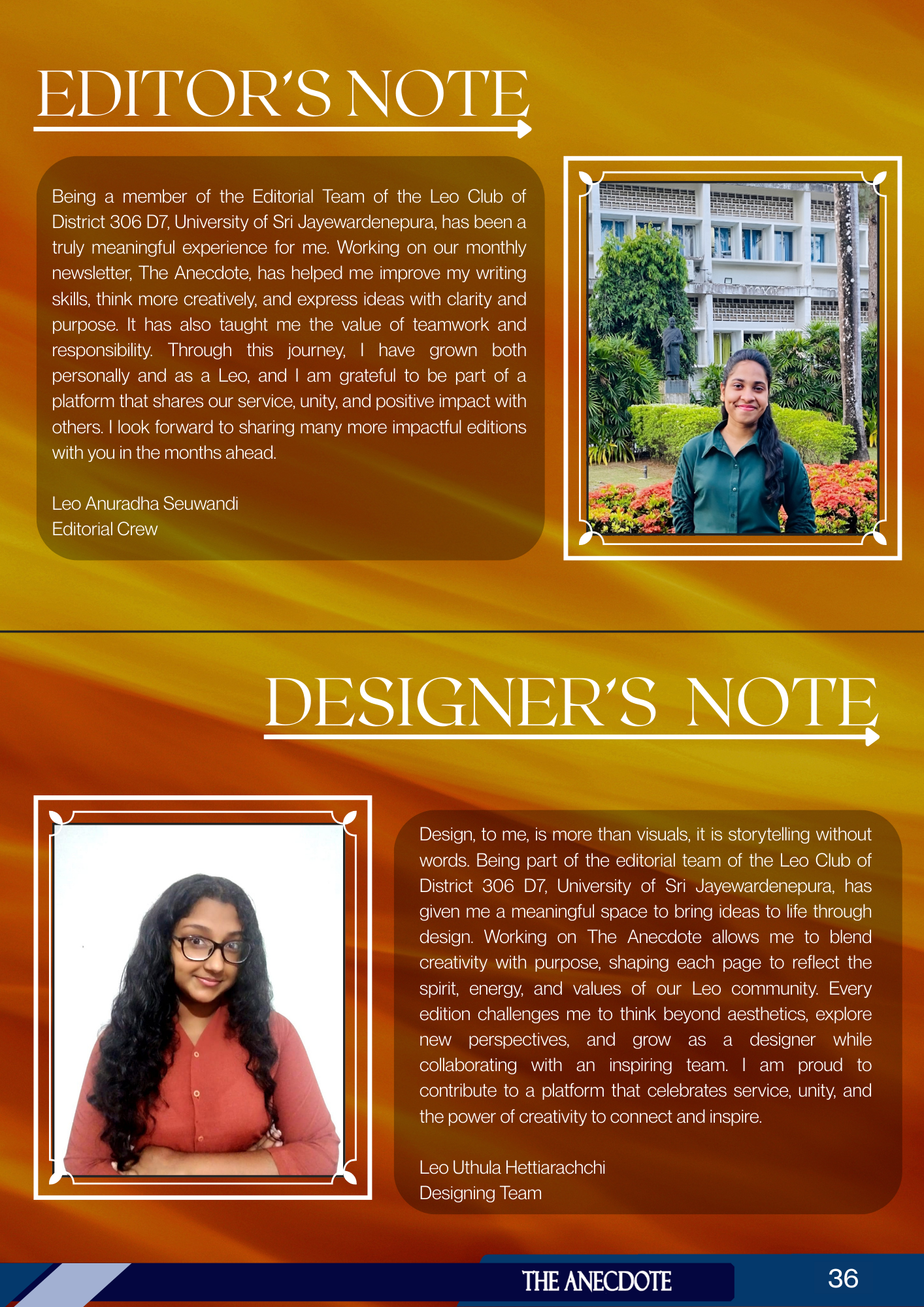 We are quite proud to present "THE ANECDOTE", the official e-newsletter of the Leo Club of District 306 D7 University of Sri Jayewardenepura. Get ready to embark on a fresh journey with our latest newsletter.