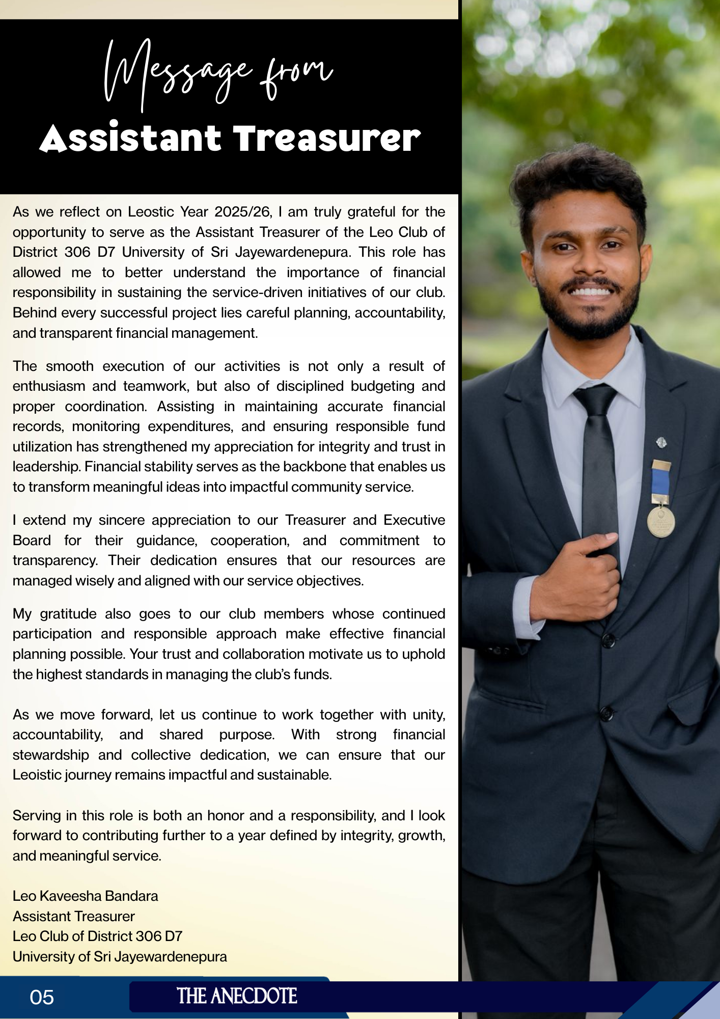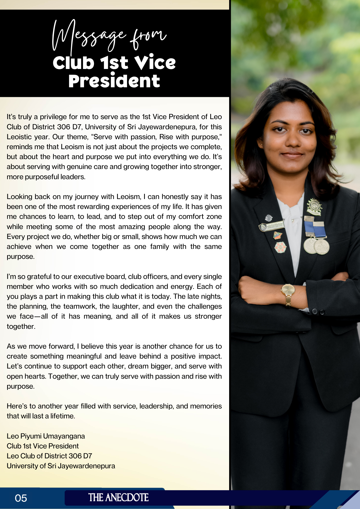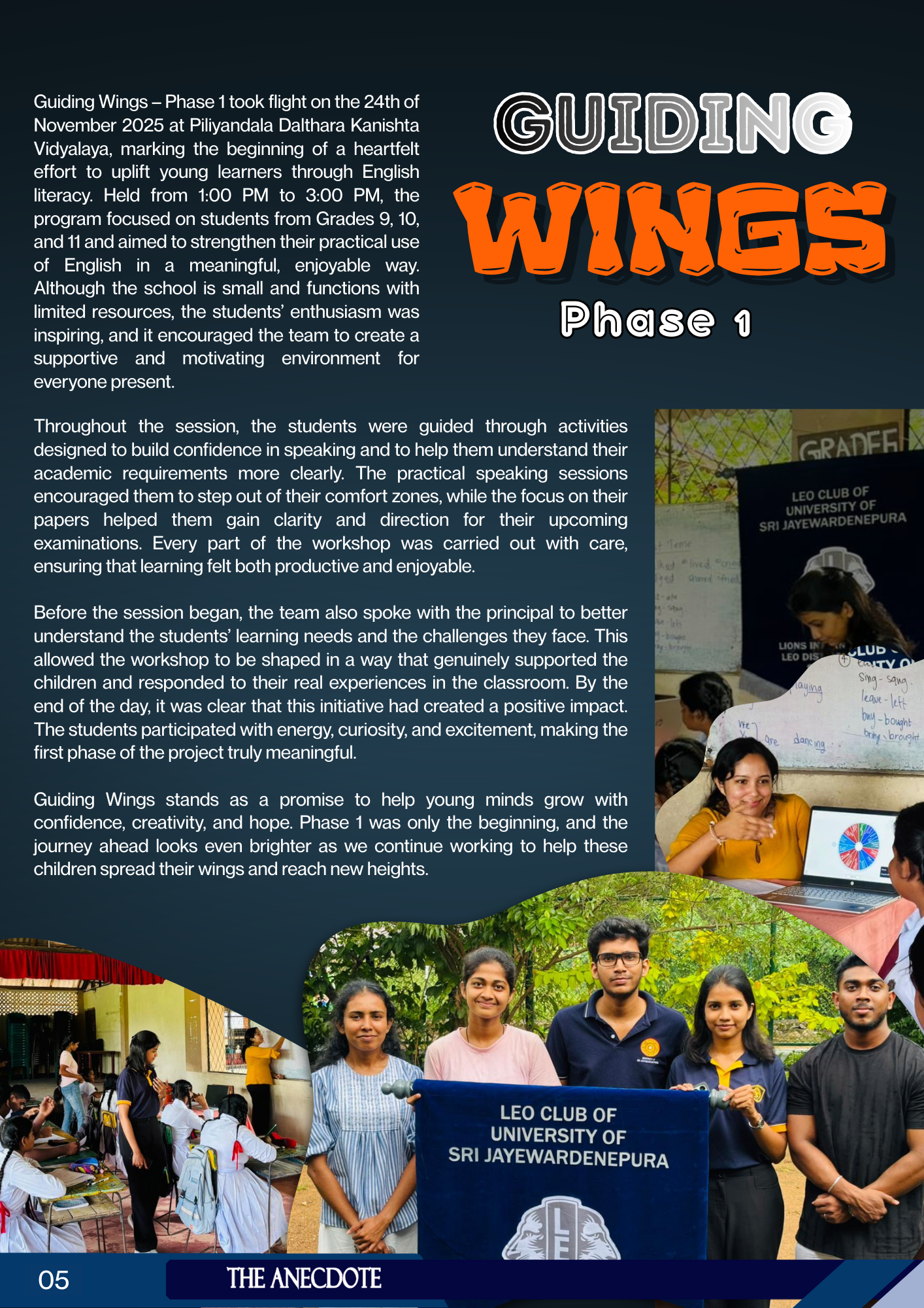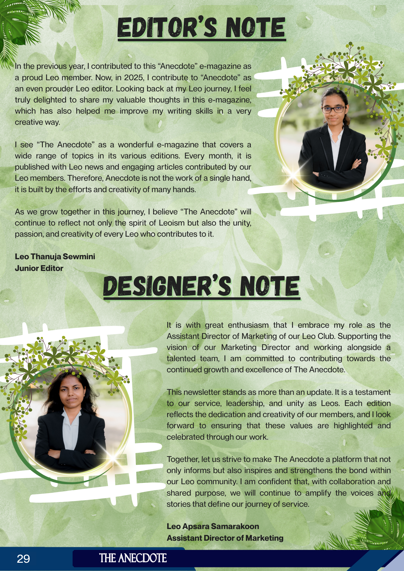 We are quite proud to present "THE ANECDOTE", the official e-newsletter of the Leo Club of District 306 D7 University of Sri Jayewardenepura. Get ready to embark on a fresh journey with our latest newsletter.