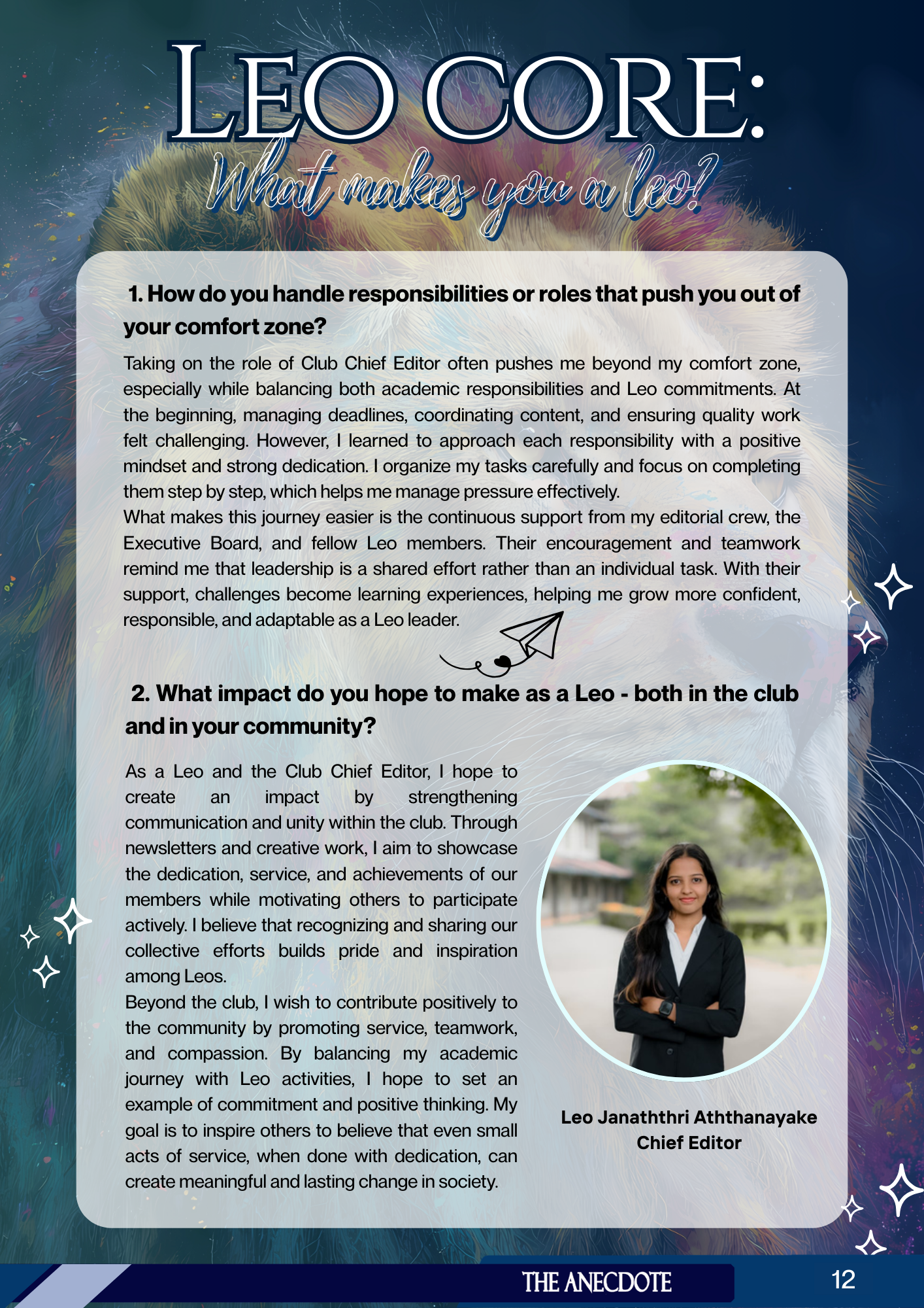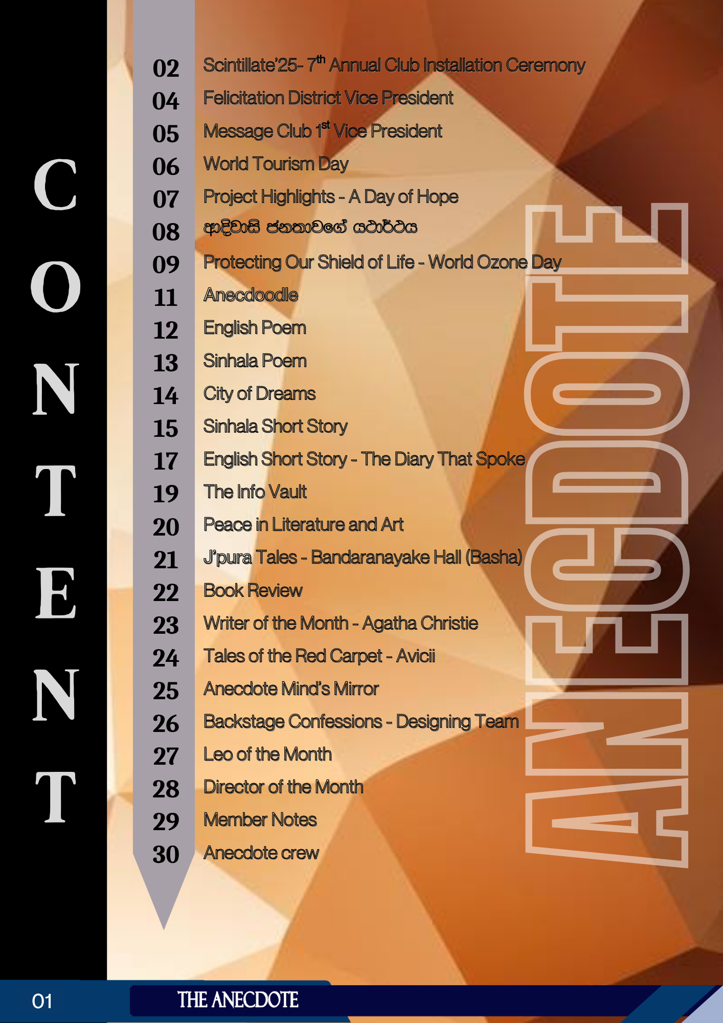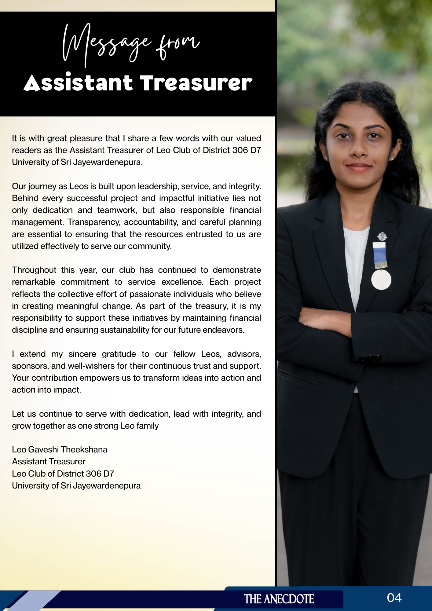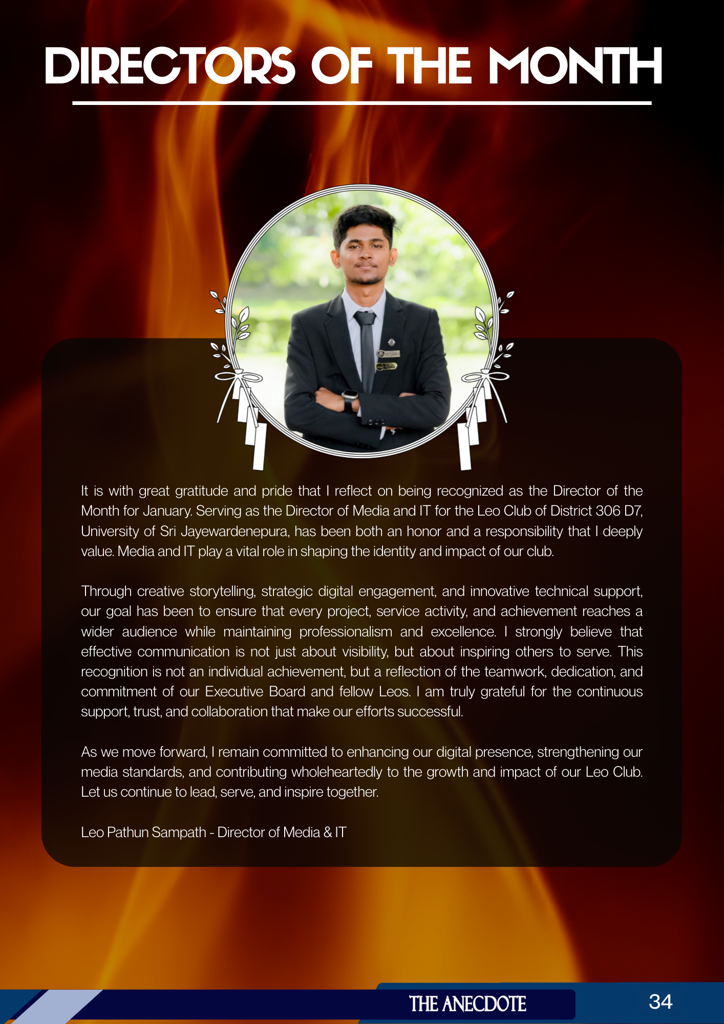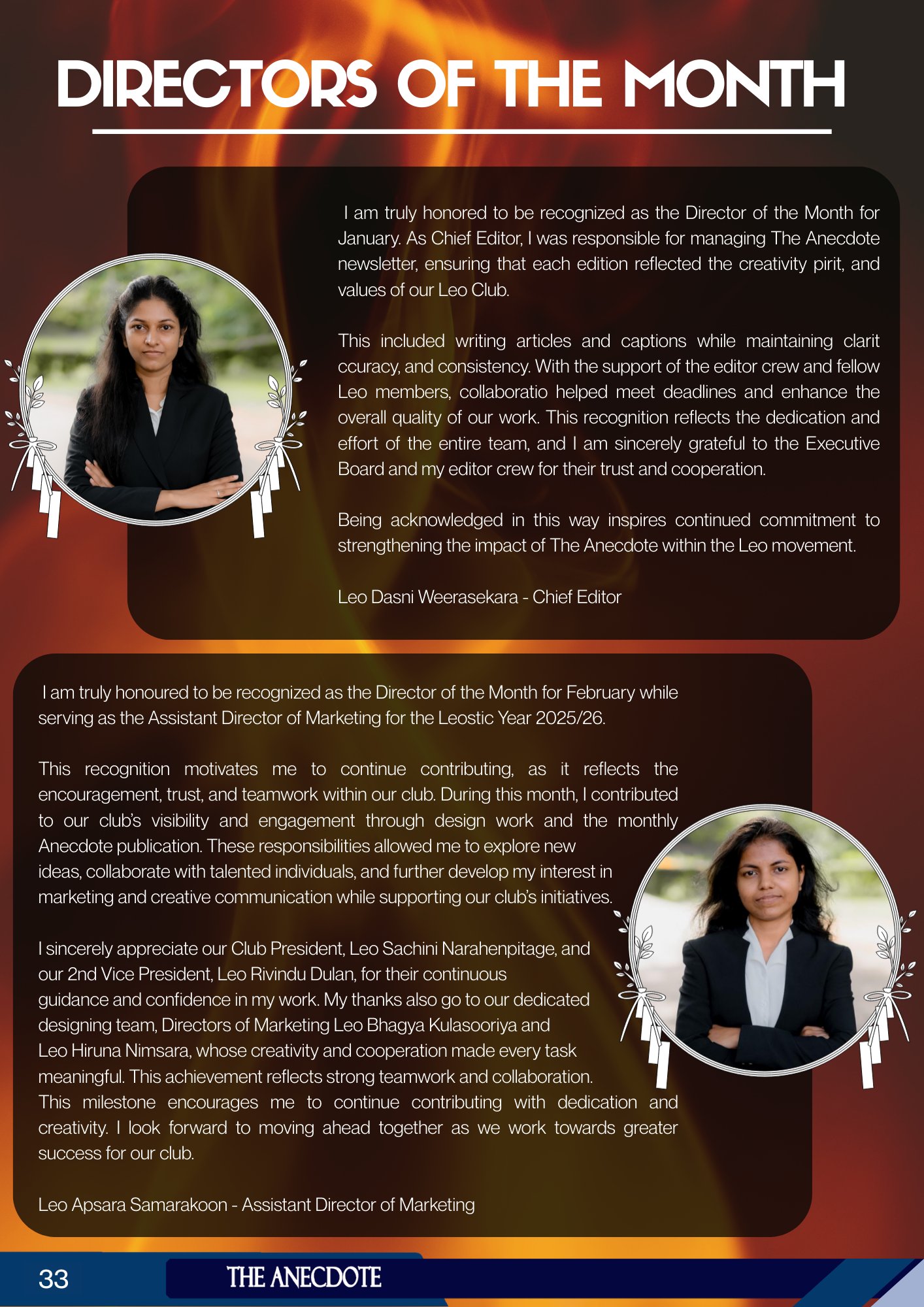We are quite proud to present "THE ANECDOTE", the official e-newsletter of the Leo Club of District 306 D7 University of Sri Jayewardenepura. Get ready to embark on a fresh journey with our latest newsletter.